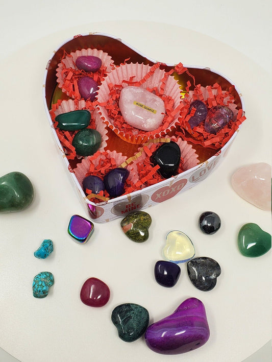 Crystal heart Easter Box, Easter Gift box for women, Chakras Gift Box, Heart shaped box of crystals,