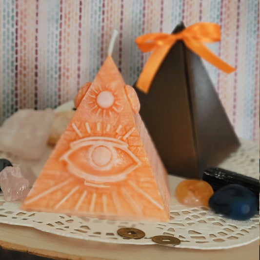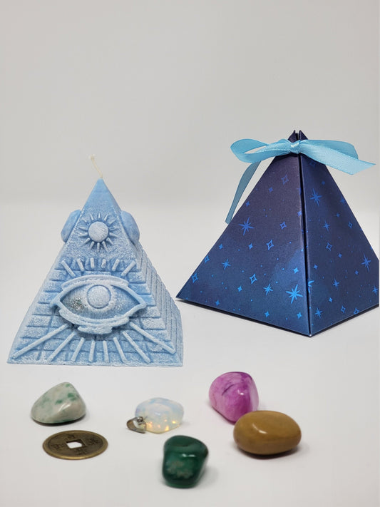 Diprana Pillar Pyramid Surprise Candle with Crystal Inside & Eye of Horus Design