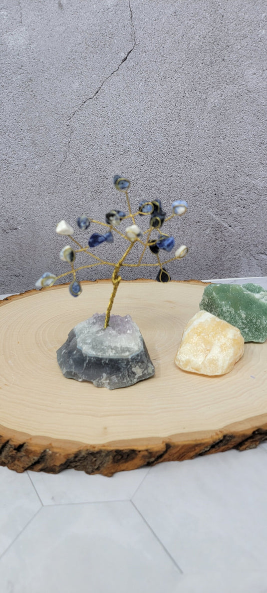 Feng Shui Lapis Lazuli Tree Gemstone - Tree with Natural Quartz Base -Feng Shui Money